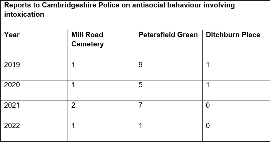 In 2022 there were only two reports us about antisocial drinking in the areas covered by the PSPO. Reports to the police of antisocial drinking in the locations covered by the PSPOs have also reduced in the last three years.